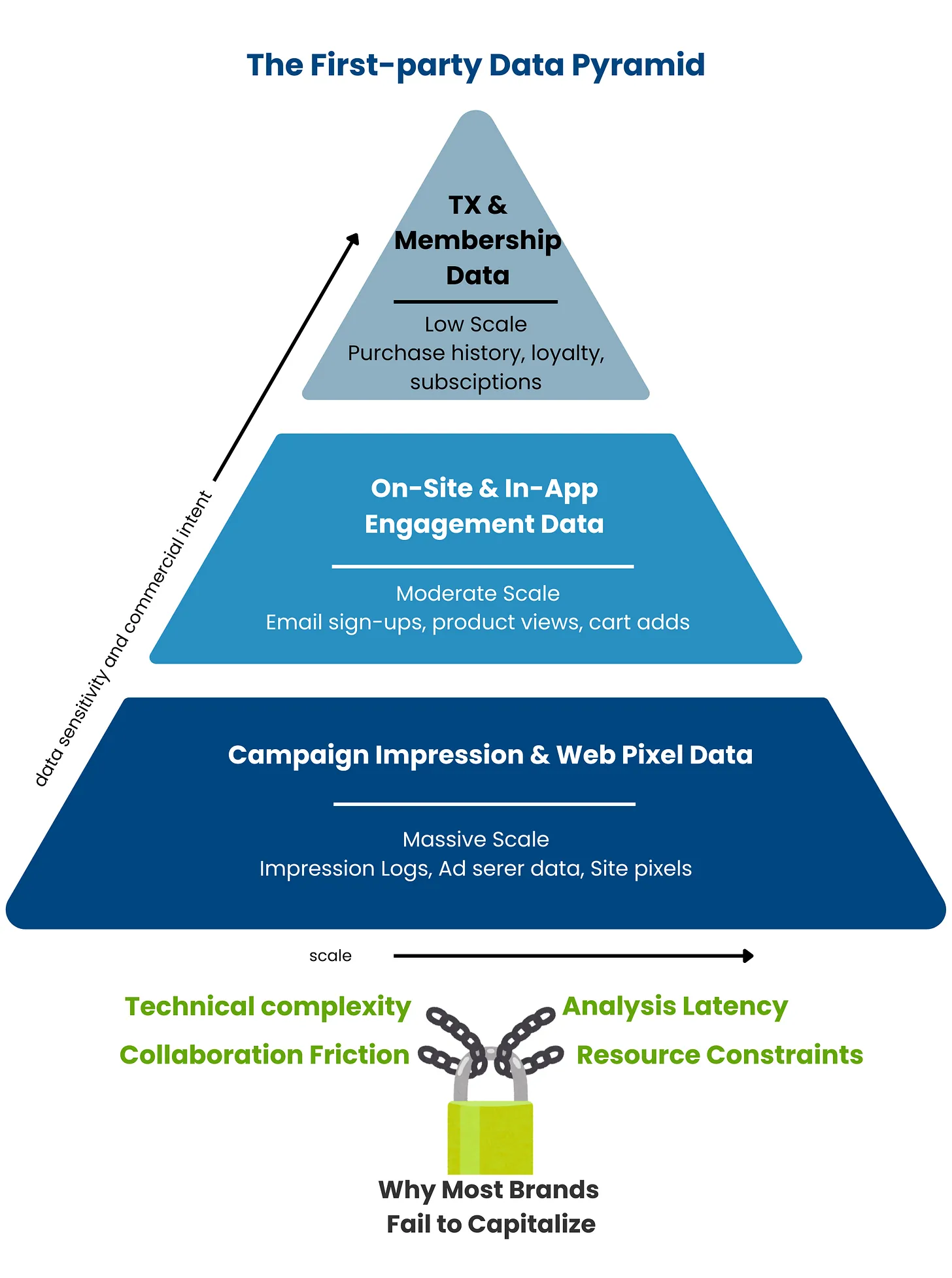 The Hidden Challenge: Most brands treat this apex data as their complete first-party asset, not recognizing that its true power emerges when combined with the vastly larger datasets below.